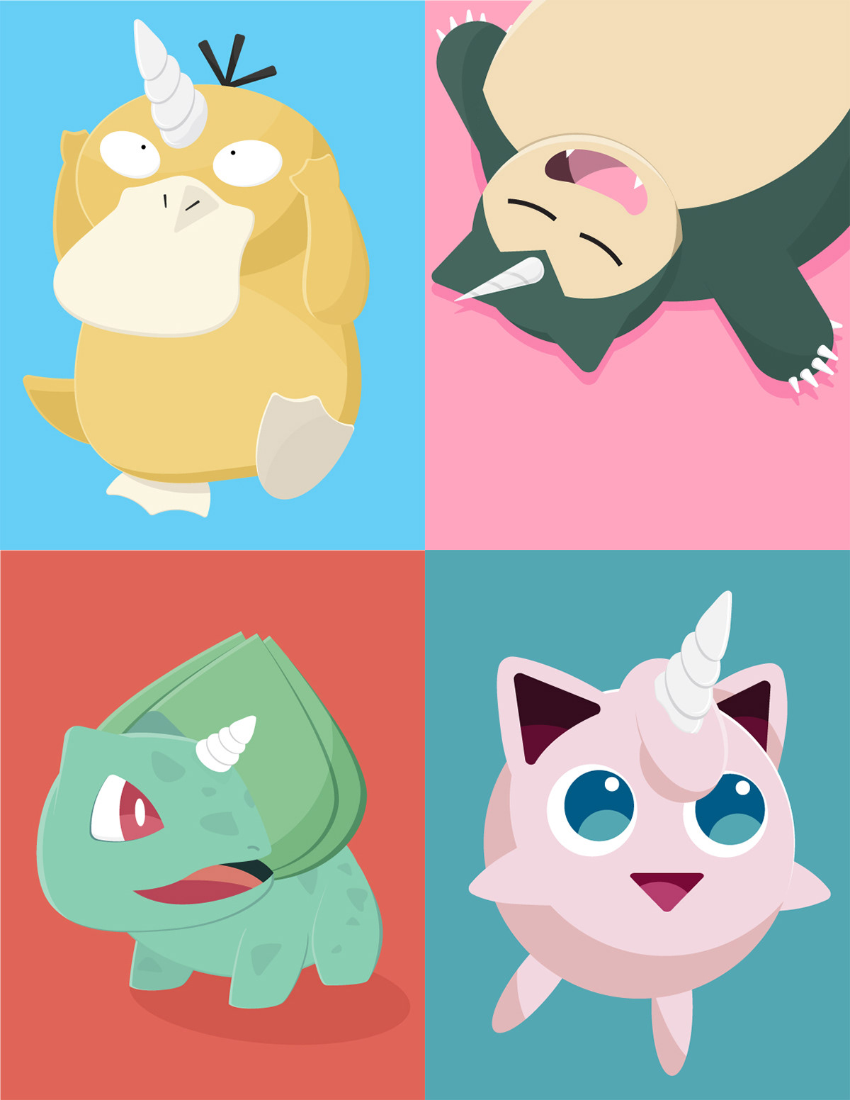Illustrations of pokemon as unicorns.